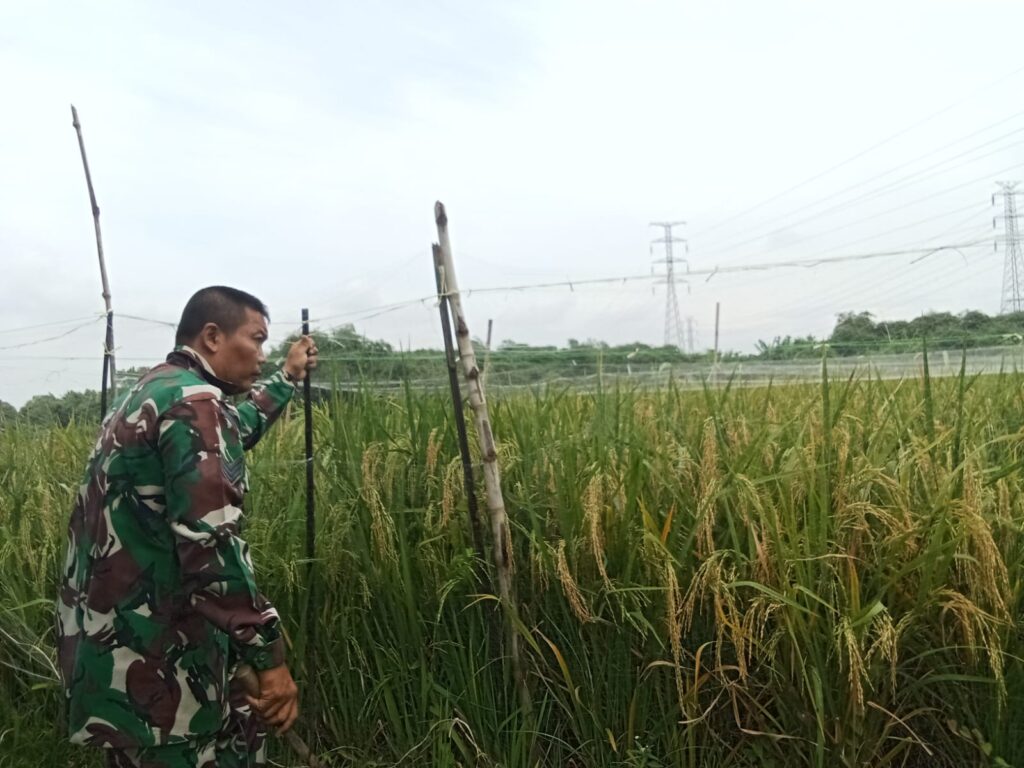 Kota Cirebon, (Jum’at, 14/11/2025), — Babinsa Kelurahan Pulasaren, Serka Wawan Hermawan, melaksanakan kegiatan pendampingan kepada salah satu anggota Kelompok Tani (Poktan) Sipanggang Jaya, Bapak Wawan, di wilayah Kelurahan Larangan, Kecamatan Harjamukti, Kota Cirebon. Pendampingan ini dilakukan saat petani tengah melakukan pemeliharaan tanaman serta pengusiran burung yang kerap memakan padi jenis varietas Mapan.