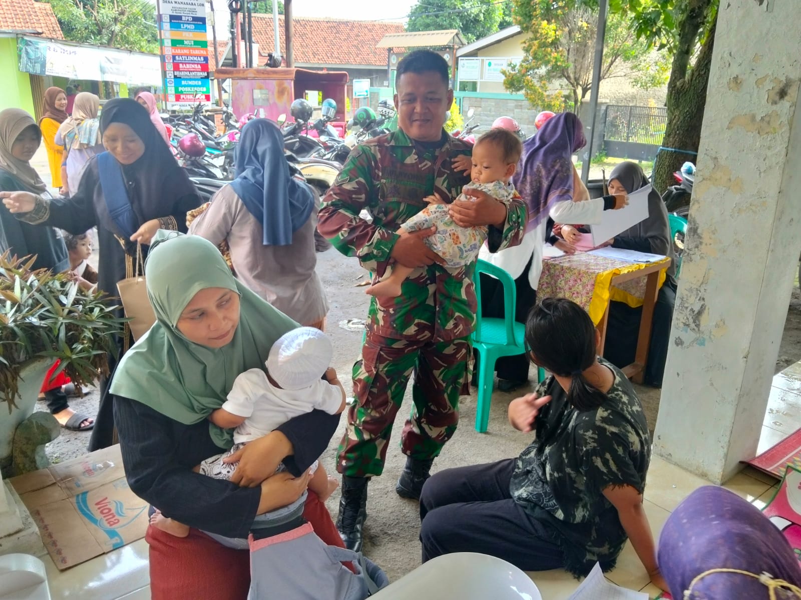 Talun, Kabupaten Cirebon — Serda Mujiyono, anggota Koramil 0620-03/Talun yang bertugas sebagai Babinsa Desa Wanasaba Lor, melaksanakan monitoring kegiatan imunisasi serta pengecekan kesehatan gratis bagi balita dan masyarakat dewasa, Rabu (07/01/2026).