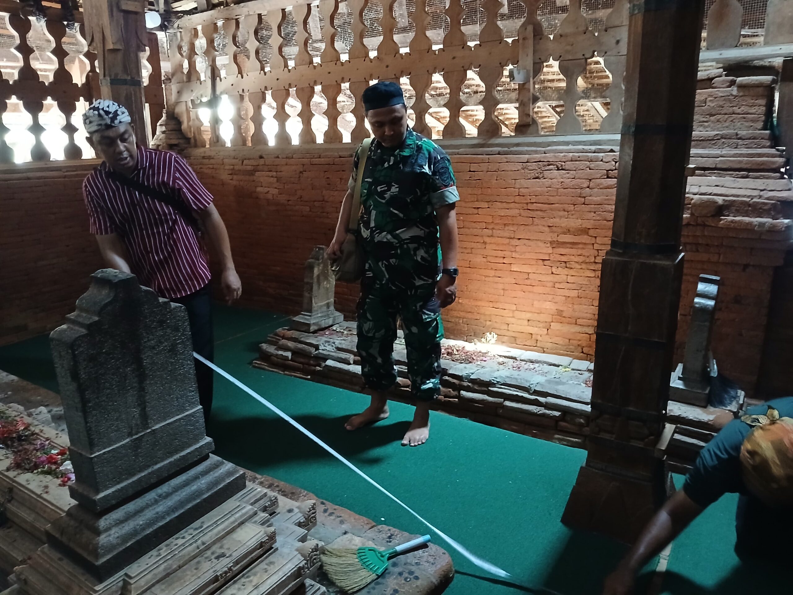 Cirebon, 26 Desember 2025 – Komandan Kodim 0620/Kabupaten Cirebon, Letkol Inf Mukhammad Yusron, S.A.P., fasilitasi karpet di area sekitar Makam Sunan Gunung Jati, Kabupaten Cirebon, sebagai bentuk kepedulian terhadap kenyamanan para peziarah yang datang untuk beribadah dan berziarah.