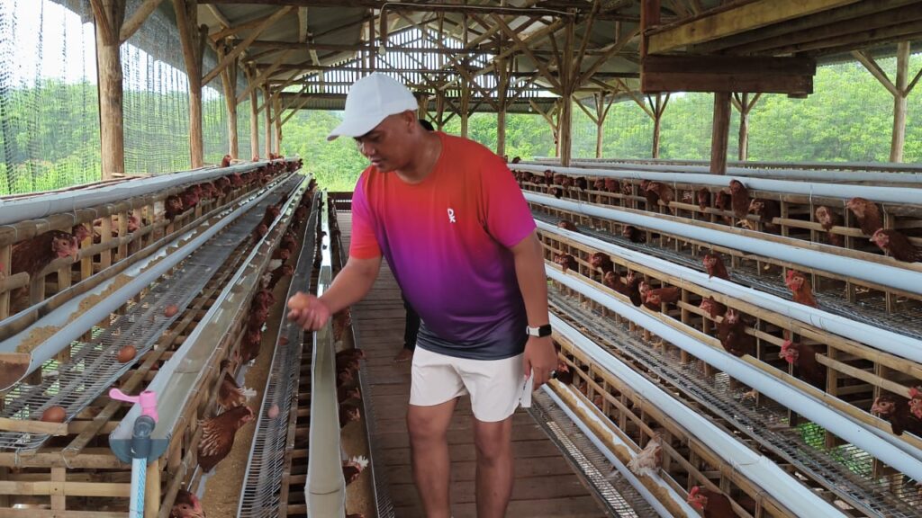 “Selain ayam petelur, kami juga mengembangkan tanaman jagung yang saat ini sudah mulai berbuah,” ujar Gunawan.