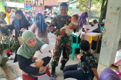 Talun, Kabupaten Cirebon — Serda Mujiyono, anggota Koramil 0620-03/Talun yang bertugas sebagai Babinsa Desa Wanasaba Lor, melaksanakan monitoring kegiatan imunisasi serta pengecekan kesehatan gratis b...