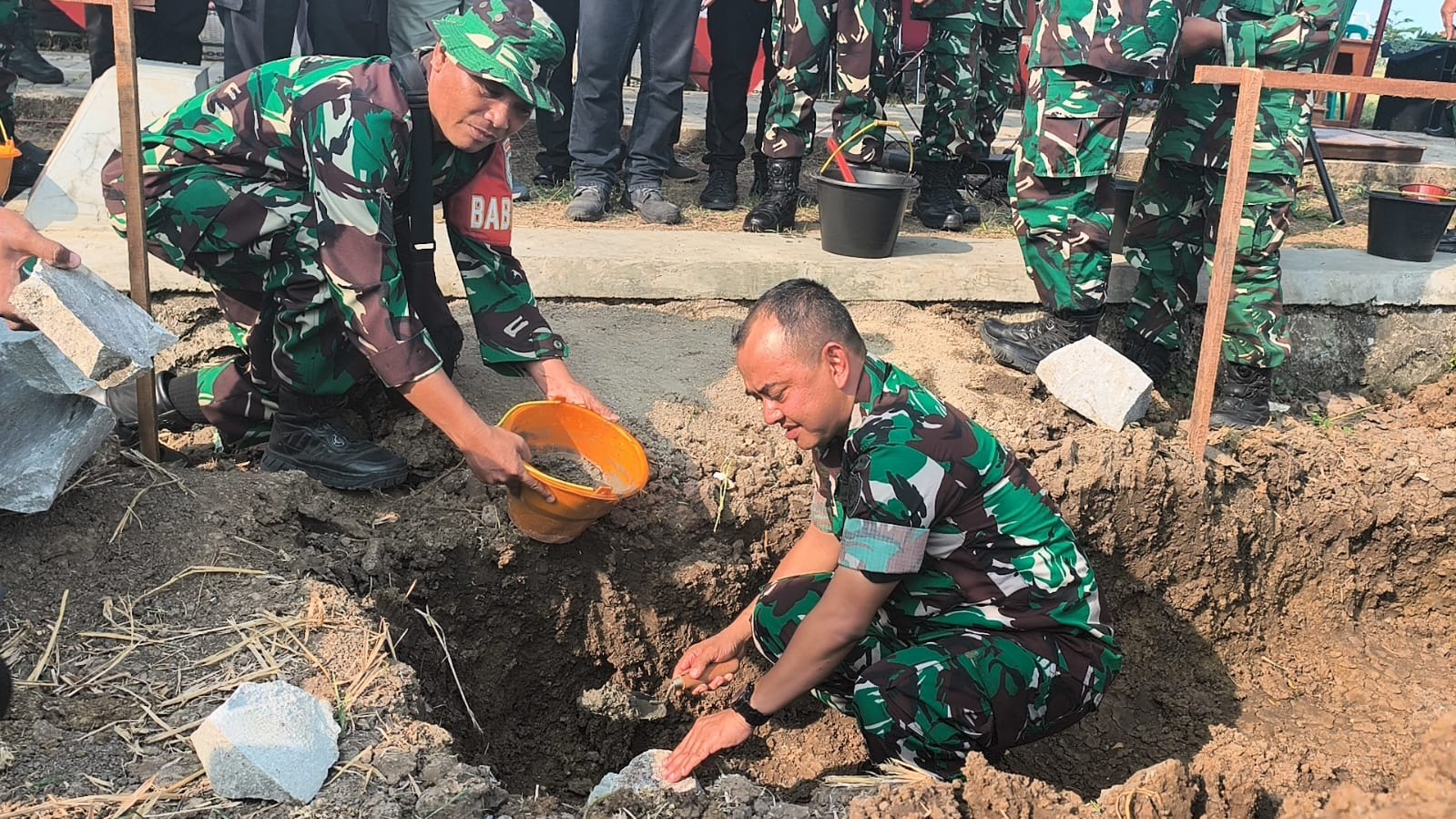 Puncak acara ditandai dengan prosesi peletakan batu pertama secara simbolis oleh Danrem 063/Sunan Gunung Jati, Dandim 0620/Kabupaten Cirebon, bersama unsur Forkopimda lainnya, serta diikuti oleh Kuwu Desa Wiyong.(Pendim 0620)