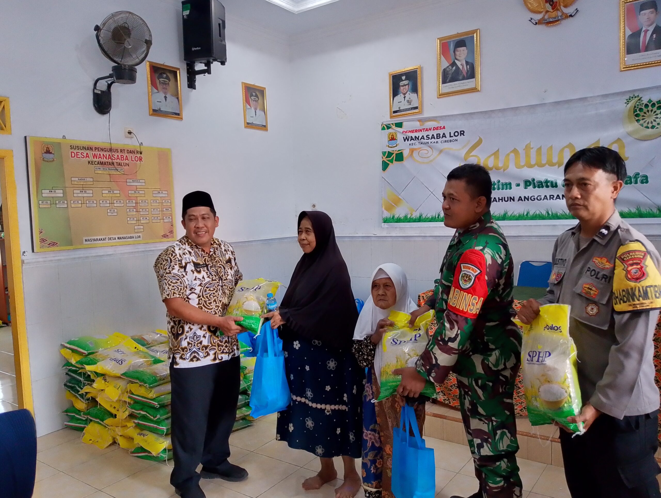 Kegiatan santunan tersebut dihadiri oleh Kuwu Desa Wanasaba Lor, Gunawan, S.Pd.I, beserta jajaran Pemdes, Babinkamtibmas Aipda Eka Sulistiyo, Babinsa Serda Mujiyono, serta para penerima santunan.