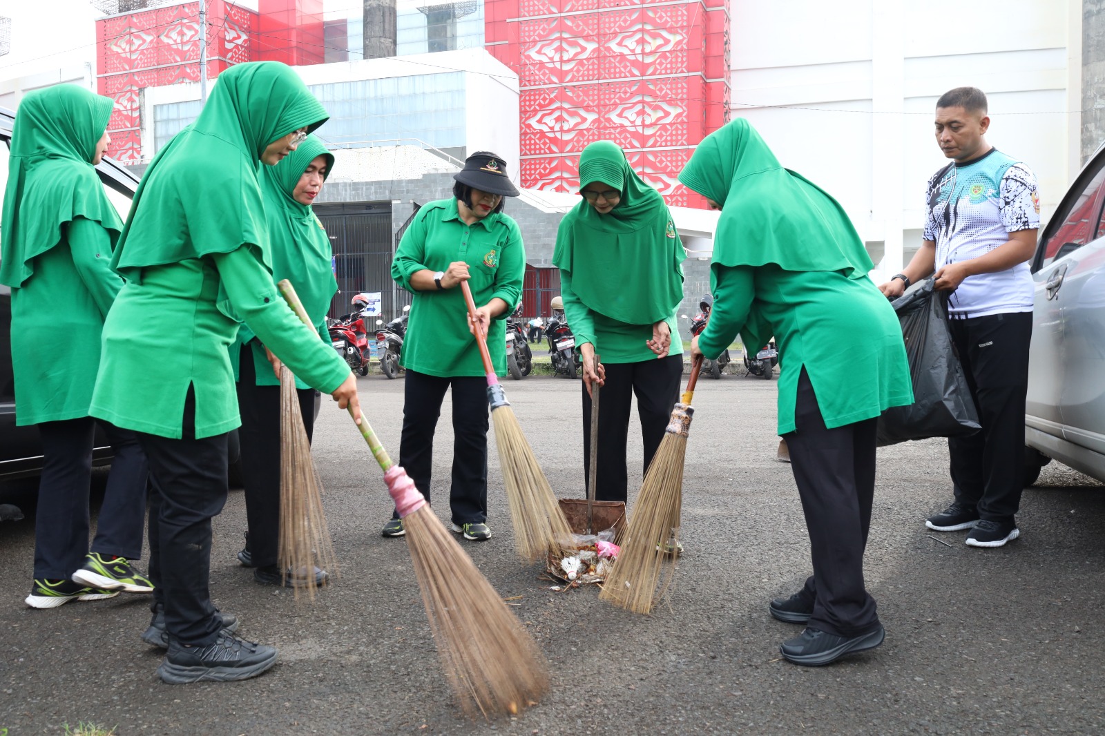 **Cirebon – Dalam rangka mewujudkan lingkungan yang Aman, Sehat, Resik, dan Indah (ASRI), Persit Kartika Chandra Kirana Cabang XXX Kodim 0620/Kabupaten Cirebon bersama personel Kodim 0620/Kab. Cirebon menggelar kegiatan Gerakan ASRI di halaman Gor Watubelah, Kabupaten Cirebon, Minggu (15/02/2026).